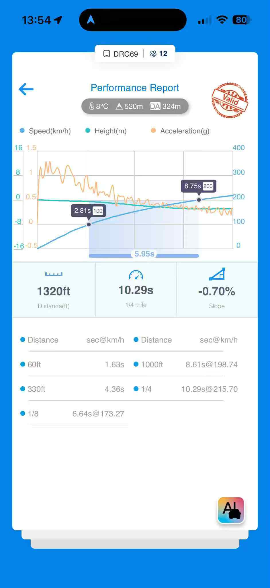 From 100 to 200 meters: 5.77 seconds!even no tuning,just change a2a